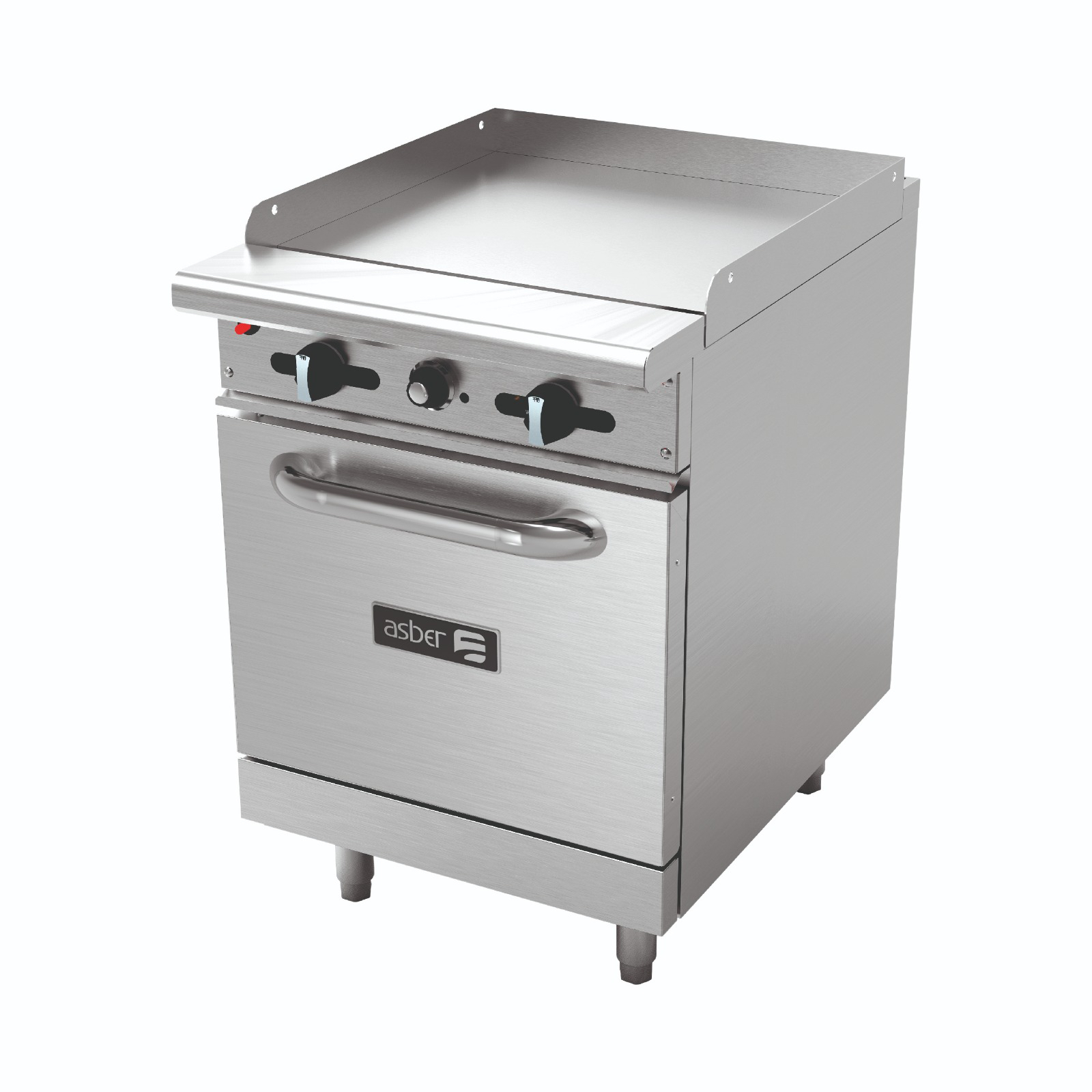 Estufa Combinada a gas Natural, Horno con potente quemador "U" de última generación y de alta capacidad, fabricado en acero inoxidable, con capacidad 30,000 BTU/HR, controlado por termostato de 250°F a 500°F, Plancha con potente quemador "U" de última generación, fabricado en acero inoxidable, capacidad 20,000 BTU/HR. Encendido a través de tubo conducción de flama, pilotos independientes para quemador, válvulas de gas reforzadas, certificadas ANSI/CSA. Manifolds en una sola pieza, abocardados por temperatura, Placa en Cold-Rolled de 3/4" de espesor soldada a cercha perimetral en acero inoxidable en calibre 14, Dotación de 1 parrilla de alambrón cromado ajustable en altura, Kit de 4 patas tubulares regulables en acero inoxidable 6" a 8". Capacidad Total 70,000 BTU/HR