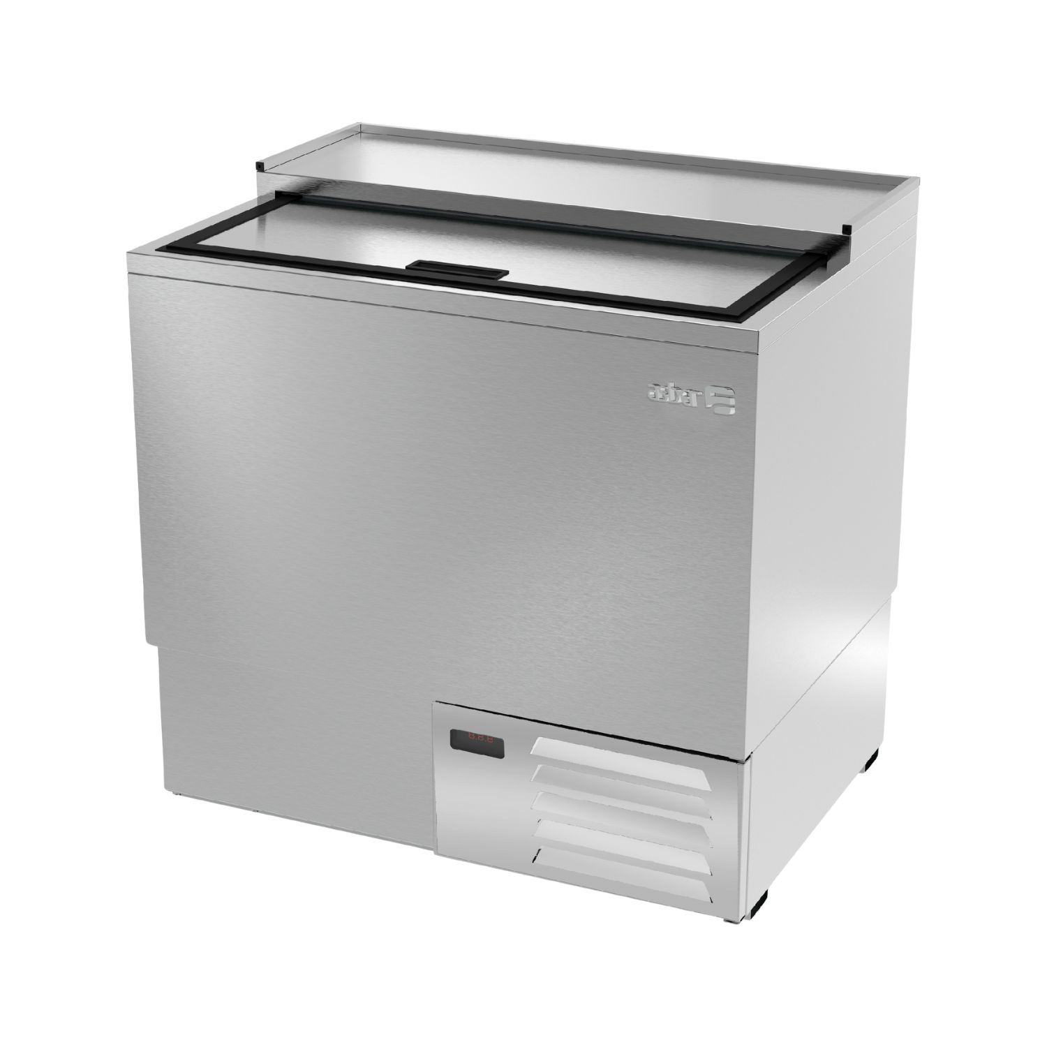 Glass Froster de 1 puerta, 6 parrillas con capacidad de 162 tarros de 10 Oz. Y 80 tarros de 25 Oz. Fabricado en lámina de acero inoxidable, Encimera en acero inoxidable austenítico, interior fabricado en acero inoxidable austenítico con cantos sanitarios de acuerdo a la norma NSF7, R290 Rango de temperatura -18°C a -22°C. Bar Line