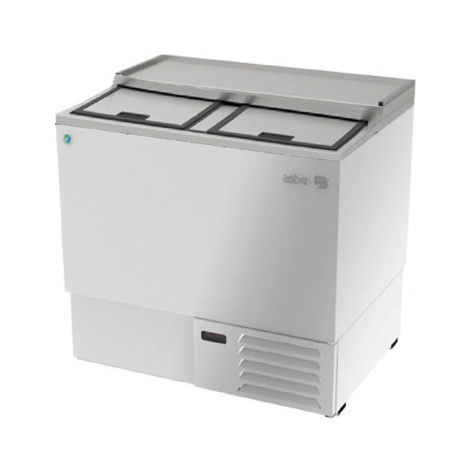 Glass Froster de 2 puerta, 6 parrillas con capacidad de 231 tarros de 10 Oz. Y 120 tarros de 25 Oz. Fabricado en lámina de acero inoxidable, Encimera en acero inoxidable austenítico, interior fabricado en acero inoxidable austenítico con cantos sanitarios de acuerdo a la norma NSF7, R290 Rango de temperatura -18°C a -22°C. Bar Line