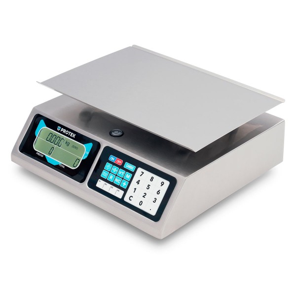 Báscula multifuncional de capacidad máxima de 20 kg, fabricada en acero inoxidable, ideal para negocios que requieren pesar y registrar cobros en un solo equipo, pantalla iluminada que facilita la lectura y evita errores de interpretación, 100 memorias programables y 4 de acceso directo, batería recargable para uso continuo de 100 horas