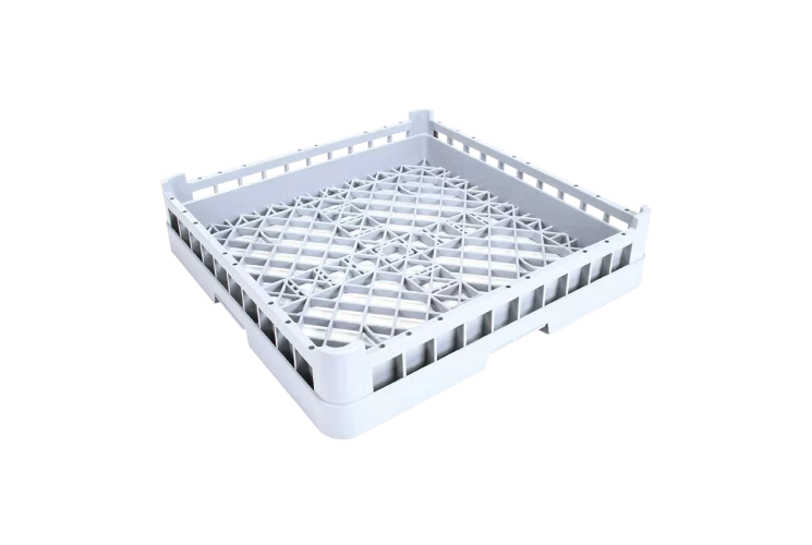 Cesta general Fabricada en prolipropileno grado alimenticio, resistente a las altas temperatura y químicos del proceso de lavado, diseño modular que permite apilar cestas, superficies perforadas que permiten el flujo de agua y evita estancación de desechos, compatible para todos los modelos de lavavajillas asber, capacidad variable