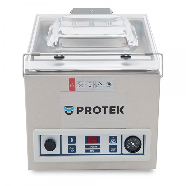 Sellador al vacío con capacidad de bomba de 8 m3/hora, con volumen de cámara de 7.378 cm3, con 1 barra selladora de 27 cm, tiempo ciclo 15 a 35 segundos, tecla stop para un paro parcial, cámara embotada con cantos sanitarios para su fácil limpieza, recordatorio de cambio de aceite, placas de inserción para un ciclo más rápido y mejor colocación de producto, nivel final de vacío 99.8% (2mBar)