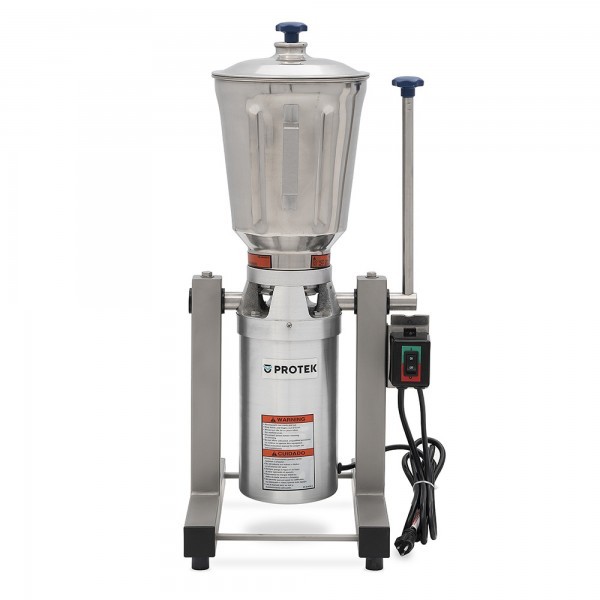 Licuadora industrial de mesa con capacidad de 12 litros, fabricada en acero inoxidable, velocidad 3,450 RPM, Cuchillas y vaso en acero inoxidable, arranque por switch para agilizar la operación, palanca para vaciado del contenido de la licuadora sin retirar el vaso, motor de 1.5 HP, estructura con pedestal para fácil manejo y optimizar espacio