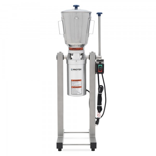 Licuadora industrial de piso con capacidad de 12 litros, fabricada en acero inoxidable, velocidad 3,450 RPM, Cuchillas y vaso en acero inoxidable, arranque por switch para agilizar la operación, palanca para vaciado del contenido de la licuadora sin retirar el vaso, motor de 1.5 HP, estructura con pedestal para fácil manejo y optimizar espacio