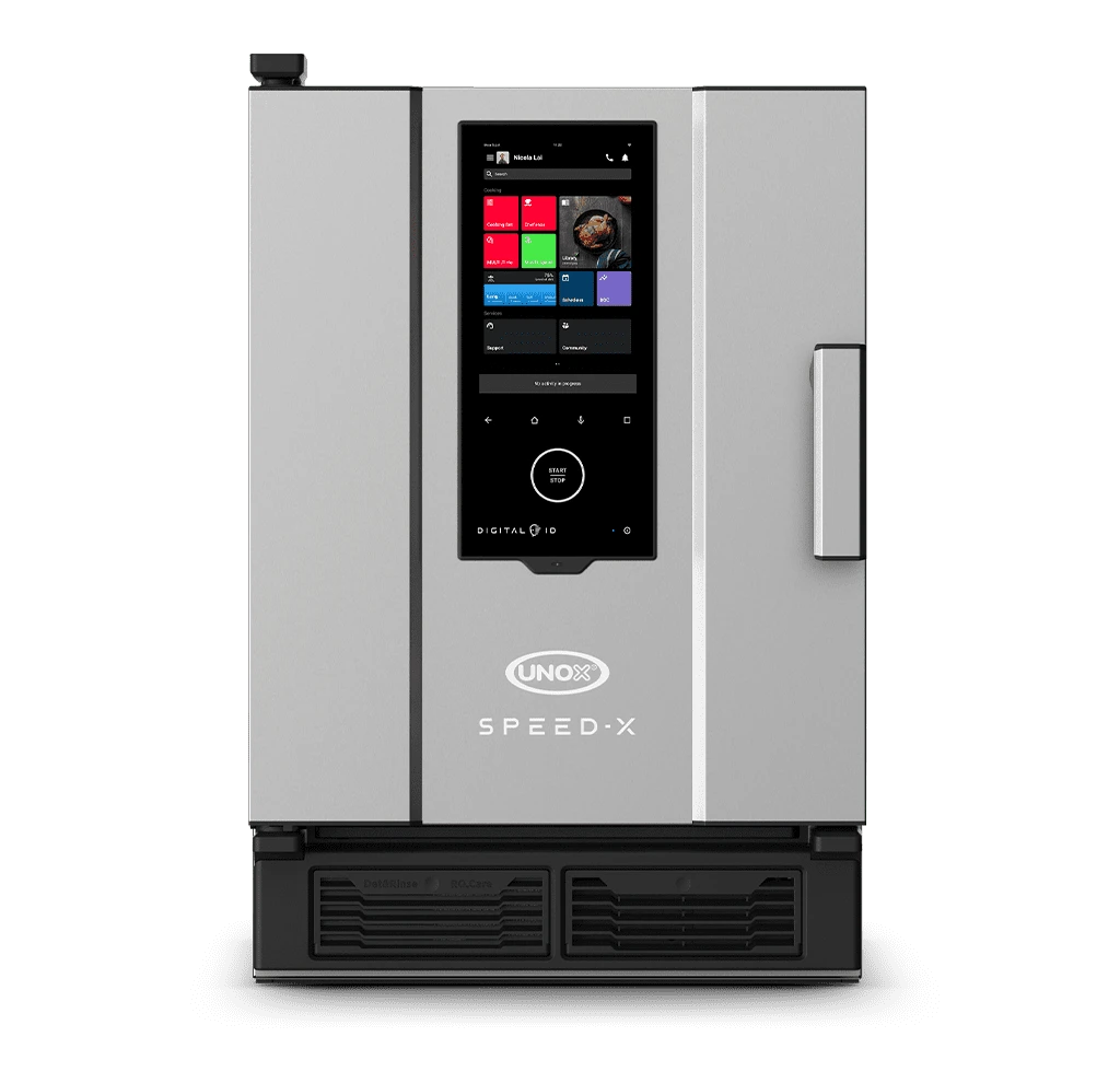 Horno de cocción acelerada con microondas UNOX Speed-X Modelo XEPA-0523-EXRS, con capacidad en modo combI de 5 a 10 charolas GN 2/3, Capacidad en modo velocidad 1 charola GN 2/3, Potencia de calentamiento del aire 5.35 kw, Potencia de Microondas 2.16 Kw, Potencia eléctrica 9.5 Kw, 220V/ 60 HZ
